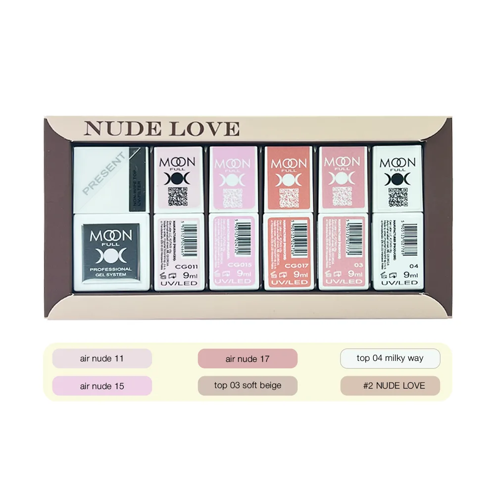 Moon Full - Nude Love Set No. 2, 5+1 (3 gel polishes, 2 tops + NON-WIPE TOP with UV-filter), 9 ml - סט ניוד - 5+1 3 יחידות של לק ג'ל + 2 טופ ללא נטרול 9 מל - סט מס, 2