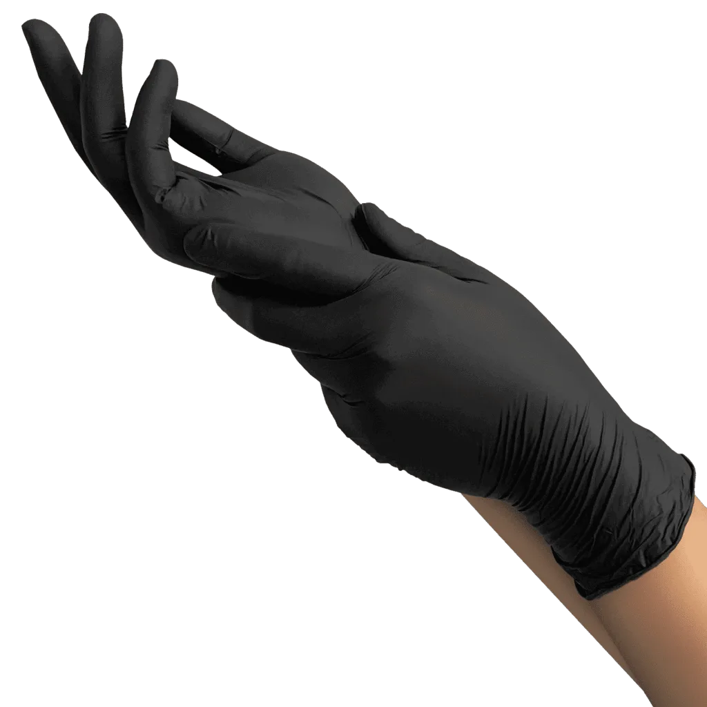 Виготовлені з міцного, гіпоалергенного нітрилу, не містять латексу, мають універсальну форму (на праву і ліву руку) та текстуровані пальці для надійного зчеплення.
