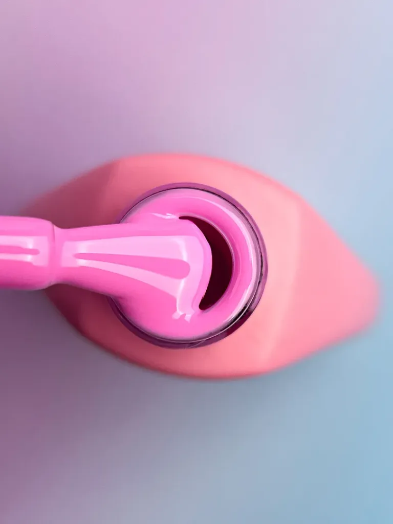 • Наносимо гель-лак (1–2 тонких шари). Набираємо матеріал на пензлик, промальовуємо центр нігтя, а потім — бічні стінки. Пензликом для тонких ліній підводимо до кутикули. Перший шар завжди має лягати напівпрозоро.