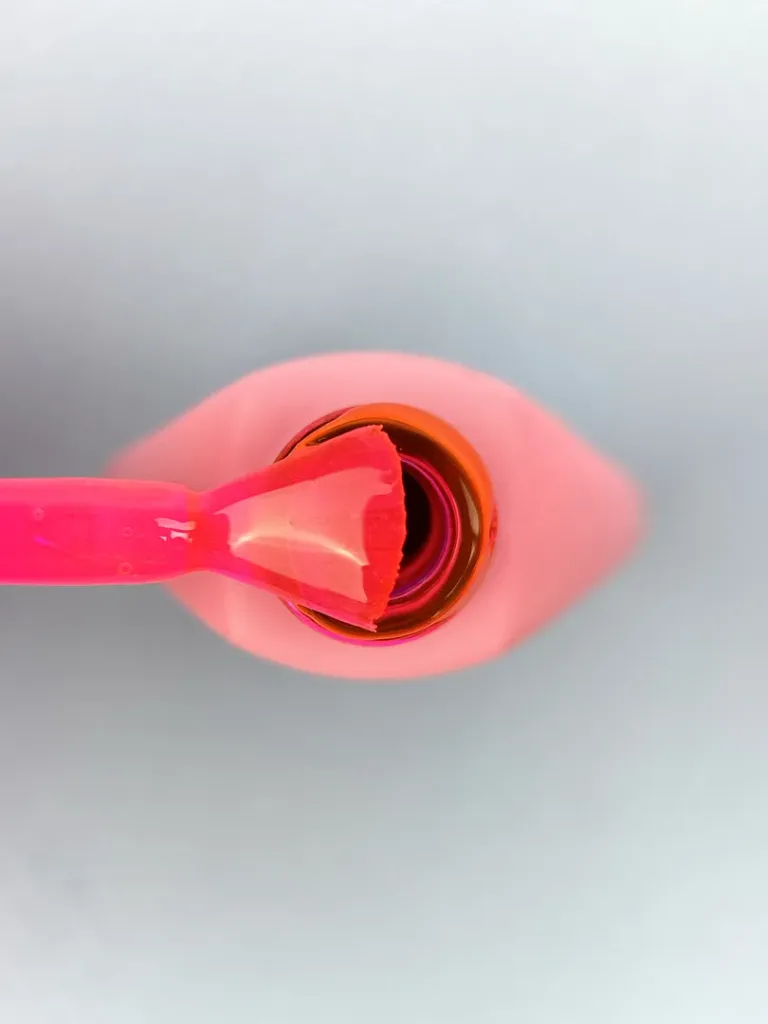 • Наносимо гель-лак (1–2 тонких шари). Набираємо матеріал на пензлик, промальовуємо центр нігтя, а потім — бічні стінки. Пензликом для тонких ліній підводимо до кутикули. Перший шар завжди має лягати напівпрозоро.
